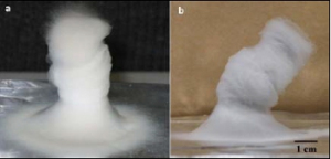 In a typical electrospinning setup comprising of a spinning nozzle and a flat plate and a grounded flat plate, the resultant fibrous structure is a nonwoven membrane. While such form is useful in many applications, it is not suitable for applications where a block structure is required. In electrospinning of most solutions, there is a limit which the thickness of the membrane can reach due to the accumulation of electrical charges on the deposited membrane. Ueki et al (2016) found that the membrane thickness increases linearly with deposition time up to a thickness of 100 µm and a duration of 4 minutes. After which it is not possible to get uniform polystyrene (PS) fiber fabric due to charge accumulation.