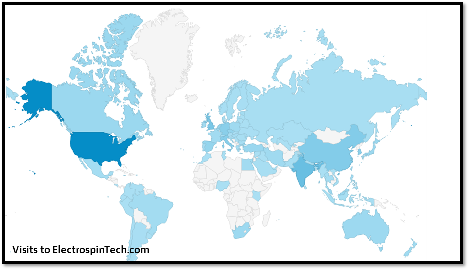 ElectrospinTech has more than 8000* visitors from close to 100* countries making use of the information provided.