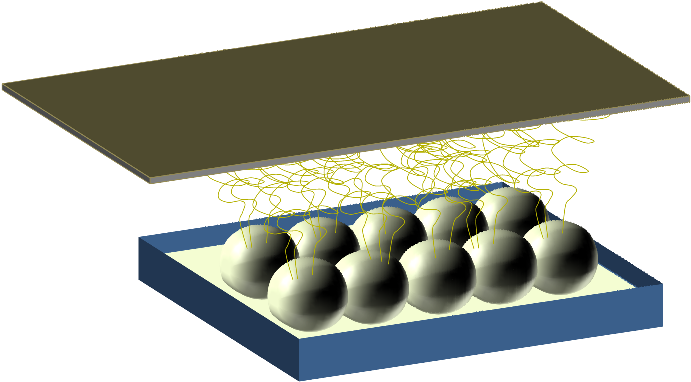 Ball electrospinning with an array of balls partially submerged in solution reservoir. Click image to enlarge.