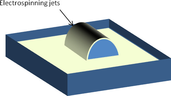 The difference between this and the earlier concept is that there is no physical structures (points or edges) to facilitate charge concentration. Without any preferential location for the initiation of the electrospinning jet, the distribution of the electrospinning jets is dependent on their self-organization and localized charge concentration on the electrified surface or solution. A higher voltage will increase the number of electrospinning jets as the number of localized areas with charges exceeding the critical voltage increases. Conversely, a reduced voltage will decrease the number of electrospinning jets.