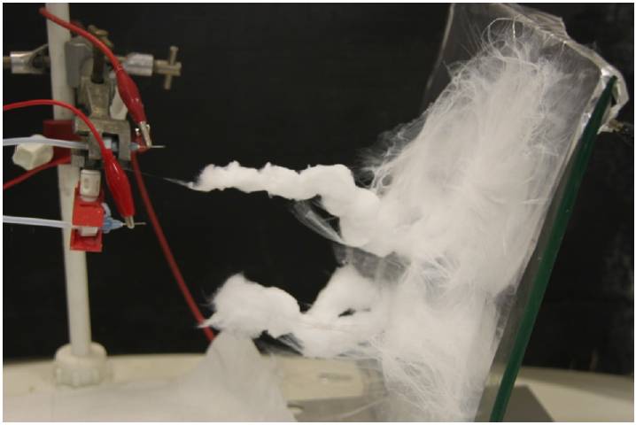 In most reported electrospinning where a collector plate is used, the resultant structure is a flat nanofibrous membrane. This is expected as the nanofibers just keep coating the collector plate. However, given the right conditions, a three-dimensional structure may be collected on a flat plate. Generally, a build-up of nanofibers is due to the influence of surface charges on the jet and the surrounding charges.
